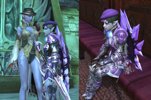 お気に入りの装備をかぶせて、課金マスタードイエローで染色して無事完了。あとは7/20に課金アカウントに無料でプレゼントしてもらえる「外見変更券」を待つだけ~。初心者応援の羽根、誰にもらうかなぁ。