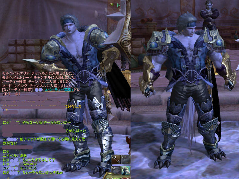 右/ クエで貰った装備が、すごく・・・や ら な い か・・・。れいさん、胸毛自重。フェロモン系シールドw