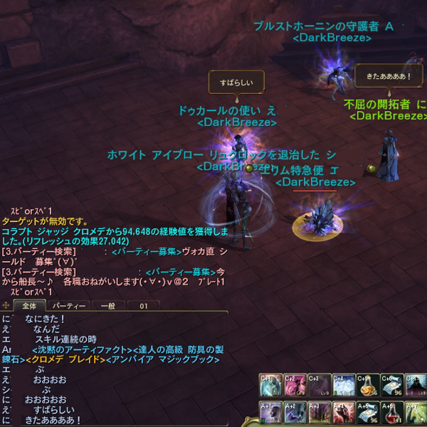 まぁ・・・よほど格下でない限り、先制取られたうえ相手は複数のPTじゃ勝ち目はないです。けど、自分の世界でクエストも満足にできないって、ムカつくじゃないですか。人口差がひどいことになっているトリニエル鯖では、低LVPT募集しても集まらないのも日常です^^; で、ソロを狙って天PTがくる、とw