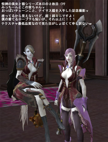 まだまだSSあるんだけど、またもやセクシーショットがないので・・・。1.9実装前夜のナフサナ帰りのSS。