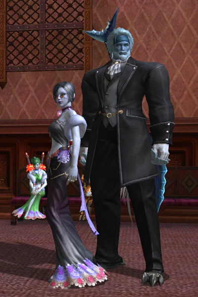 並んだところを、ポチ付でばっちり撮影b (ポチ:親方様のおしゃれ装備のマグロ。猫によくたかられる)