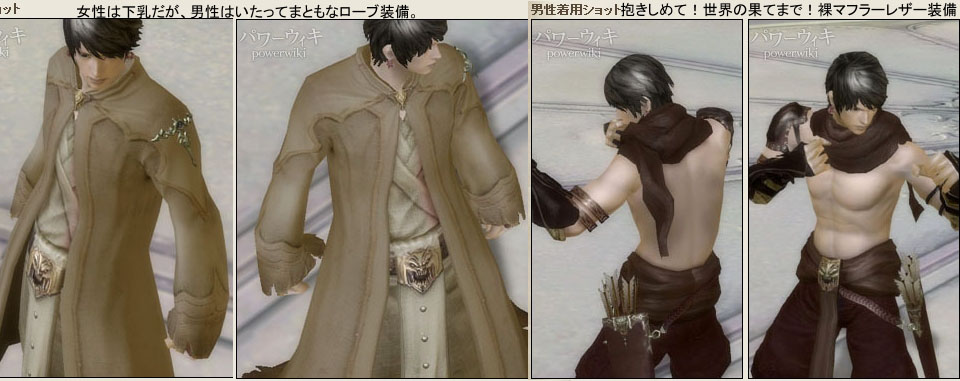 男性のローブ装備は、いいとこのおぼっちゃんっぽい?そして極めつけは、裸マフラーのレザーwwwww